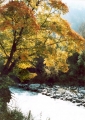 在秋风的浸染下,眼前的景色,斑斓多彩。大自然用赤橙黄绿青蓝紫各种绚丽的色彩,把米亚罗装点成了一段和谐动人的金秋画廊。枫树、槭树、桦树、野樱桃、花楸树、鹅掌松、落叶松披上了鲜红和金黄的盛装。清风拂过,林木婆娑起舞,争奇斗艳,变幻着姹紫嫣红的秋韵。你会在这里徘徊流连,醉饮秋光,高吟低唱,乐不思归。